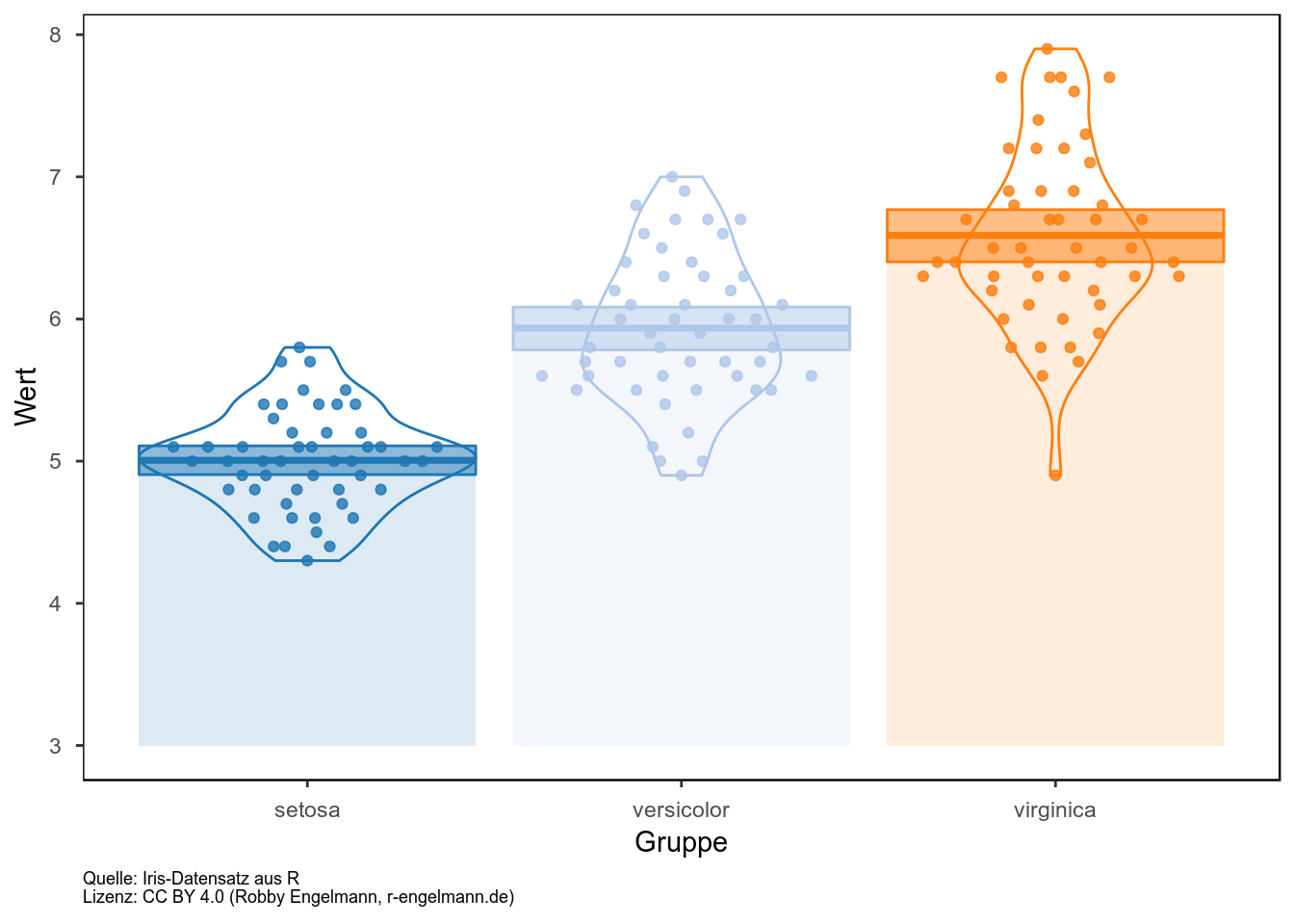 Eine weitere Variante ist der Violinplot, mit dem man die Datenverteilung noch genauer visualisieren kann: